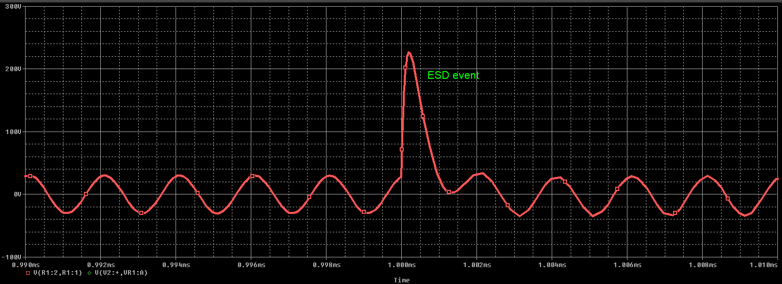 ESD事件的SPICE EMC仿真結(jié)果