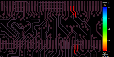 首先,選擇“反射工作流”和要檢查的網(wǎng)絡(luò)。選擇網(wǎng)絡(luò)后,單擊“開始分析”以開始仿真。模擬器完成后,您可以單擊“反射視覺”以查看熱圖,該熱圖標(biāo)記選定網(wǎng)絡(luò)中反射的位置。您也可以單擊反射表以查看特定的過沖/下沖值及其在面板中的坐標(biāo)。由于我們正在處理此板上的DDR線,因此可以將這些值與反射表中的JEDEC規(guī)范進行比較。